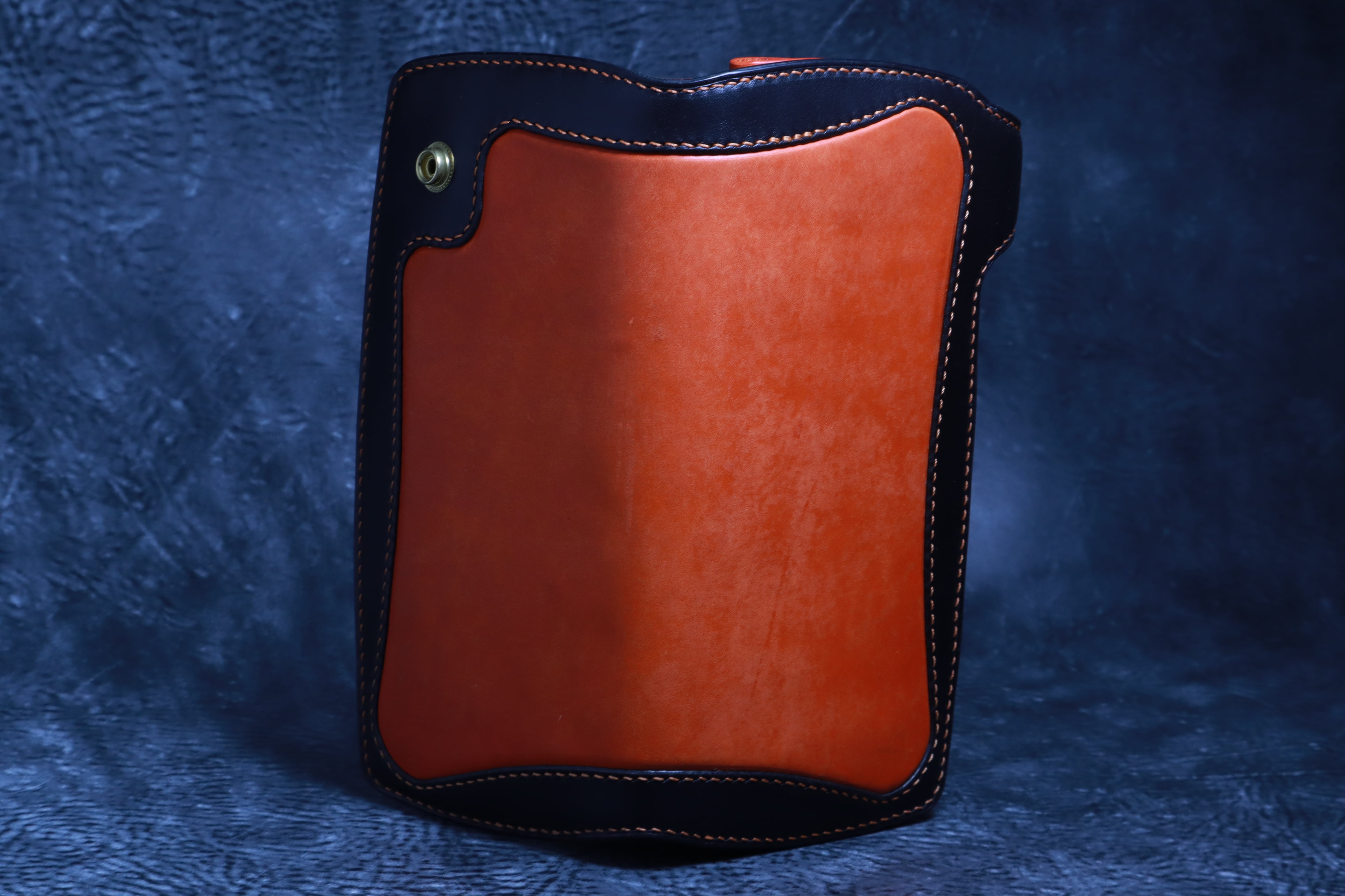 ブラックの革はスムースレザー、オレンジはスクラッチレザーと対照的な二つを掛け合わせることで調和の中にもアクセントを生み出しました。