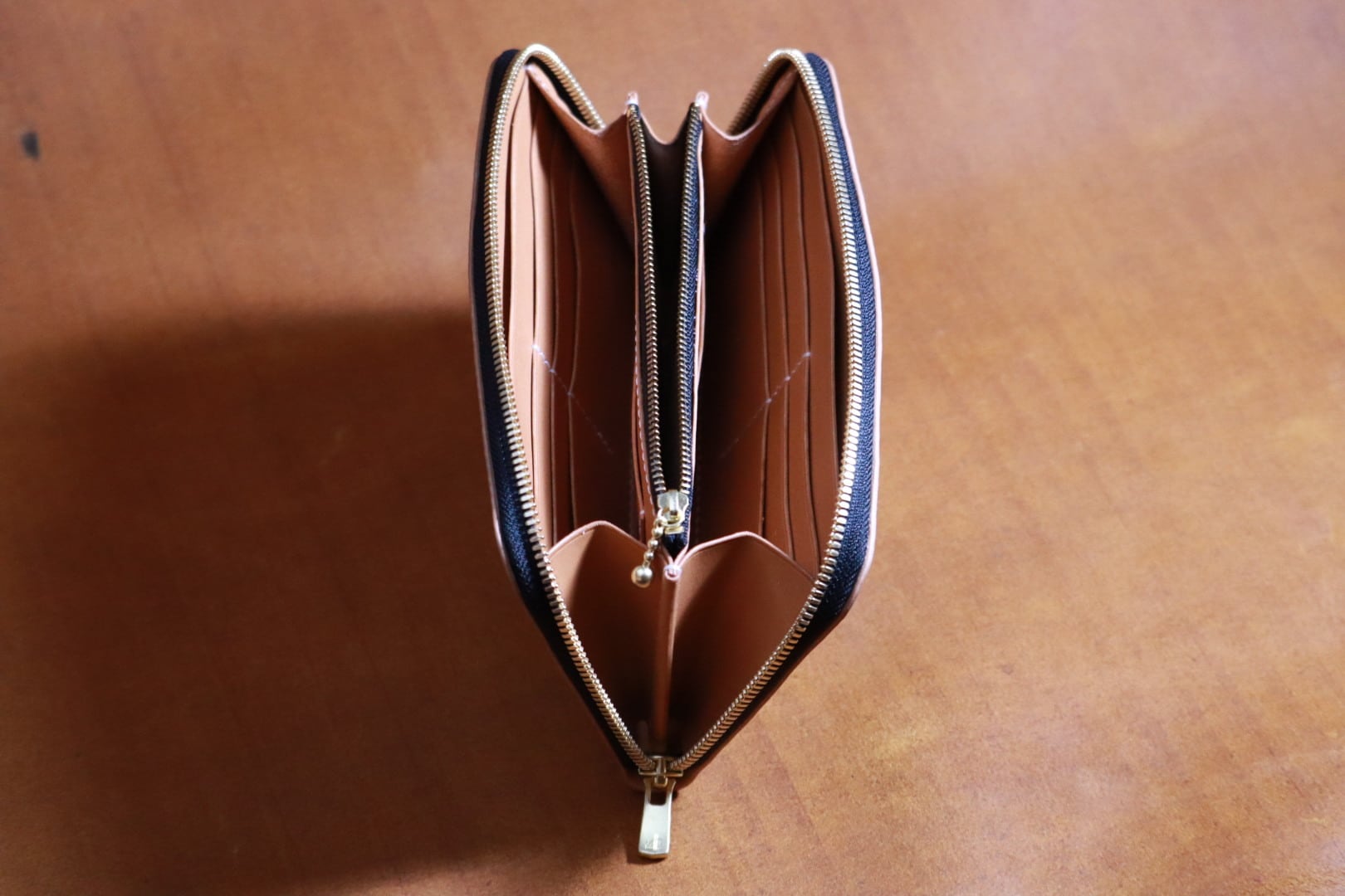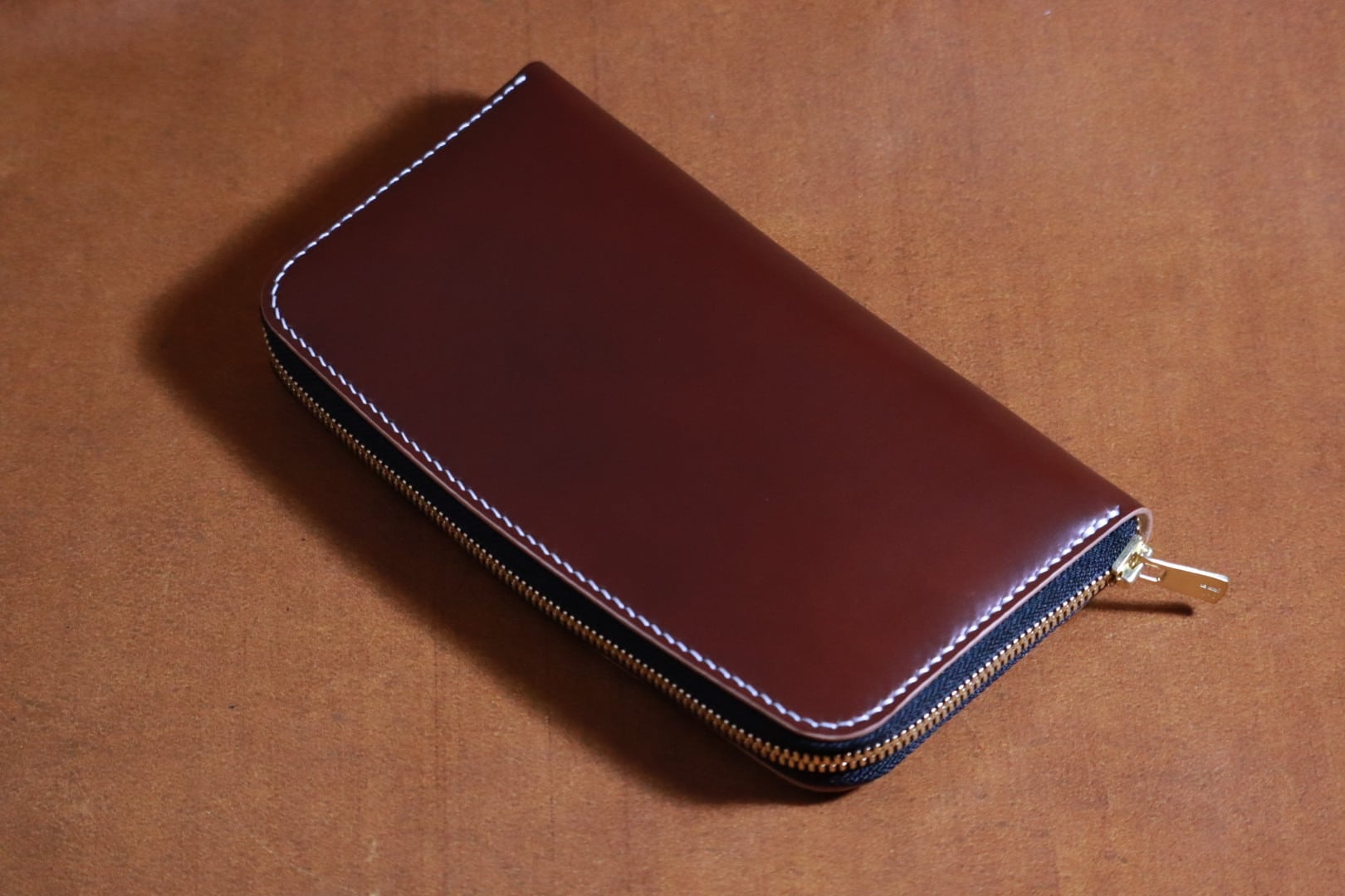 国産のオイルコードバンを外装に使い、内装にはイタリアンレザーを使用した贅沢な一品です。