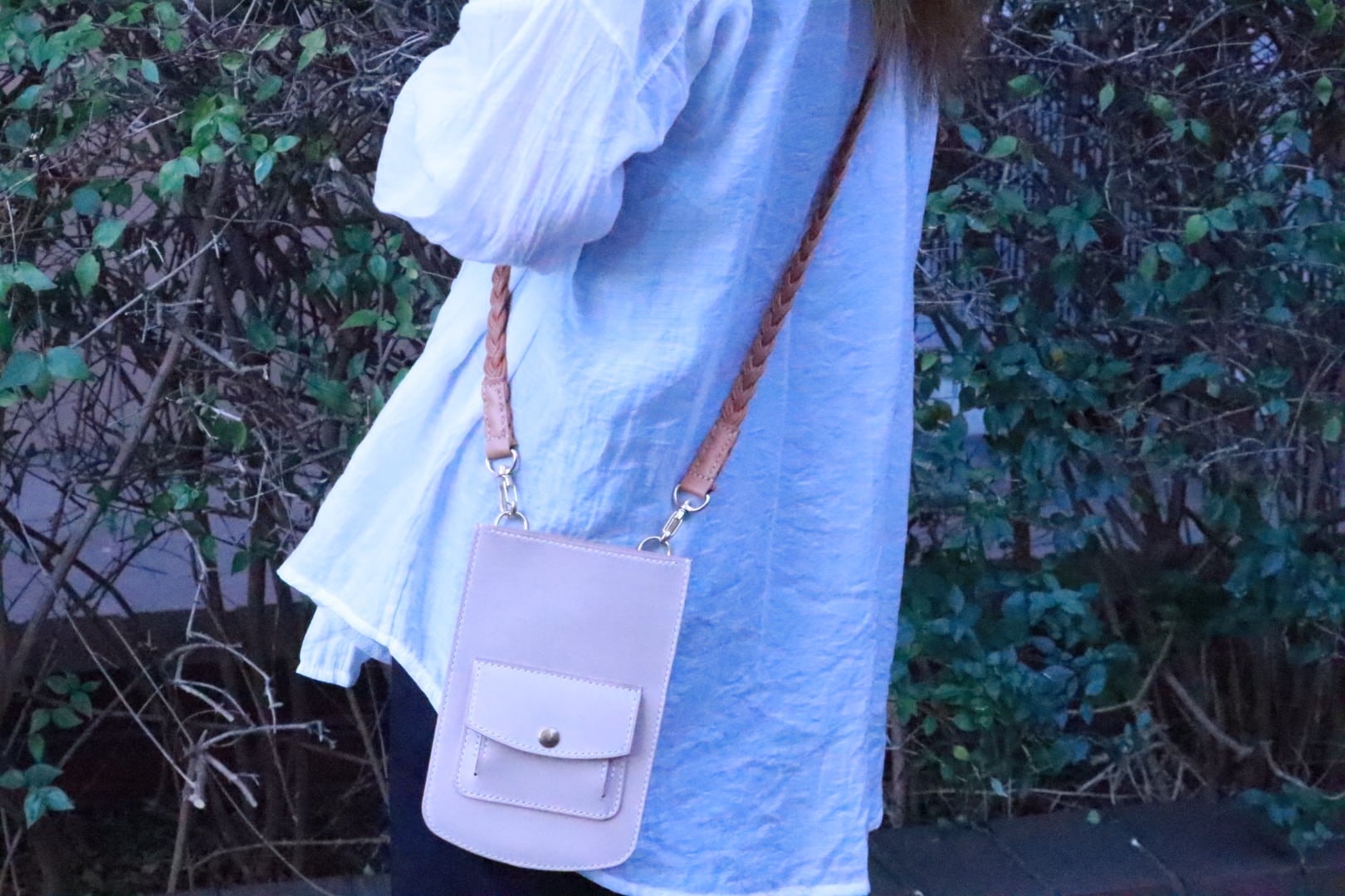ショルダーベルトは方に食い込み難い三つ編みのベルトを使用しました。